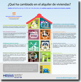 Le explicamos de manera clara, a través de una infografía, las principales modificaciones introducidas por el Real Decreto-ley 21/2018, de 14 de diciembre, de medidas urgentes en materia de vivienda y alquiler, que entró en vigor el 19 de diciembre de 2018.